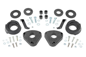 Innovative Design and Construction. This easy-to-install kit offers increased ground clearance and levels the vehicle from front to rear for a more aggressive look. Rough Country's 2" Lift Kit offers front upper strut spacers, laser-cut for a precise fit. Rough Country's spacer kits boast a heavy-duty steel construction and a durable black powder-coat finish that will stand up to the test of time. Each kit features durable pre-load spacers and rear coil spring spacers and includes all necessary hardware for installation!