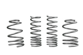 Whiteline Springs deliver improved vehicle performance whilst maintaining safety and ride quality characteristics. This kit contains 3.6kg/mm (201lb/in) front rated springs that provide a 15mm drop while the 4.3kg/mm (241lb/in) rated rears deliver a desirable 30mm to the vehicle. By lowering the vehicles centre of gravity, the unique and progressive rate coil design not only improve performance but enhance overall appearance. Developed and manufactured in Europe from the highest quality materials, coating and to the finest tolerances guaranteeing exact fitment. Whiteline Springs are engineered for optimal balance with OEM and aftermarket shocks. For total grip activation match with Whiteline Sway Bar and Essentials kit for unrivalled handling and optimal vehicle performance.