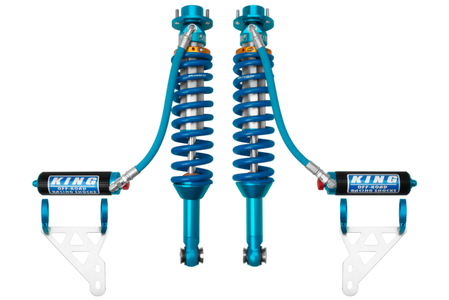 The front coilovers (Part Number: KIN25700-429A) feature Kingās advanced 2.5-inch Internal Bypass (IBP) technology, allowing for precise damping control throughout the shock travel. External remote reservoirs increase oil capacity for consistent performance under extreme use, while the compression adjusters let you fine-tune your ride for varying terrain.