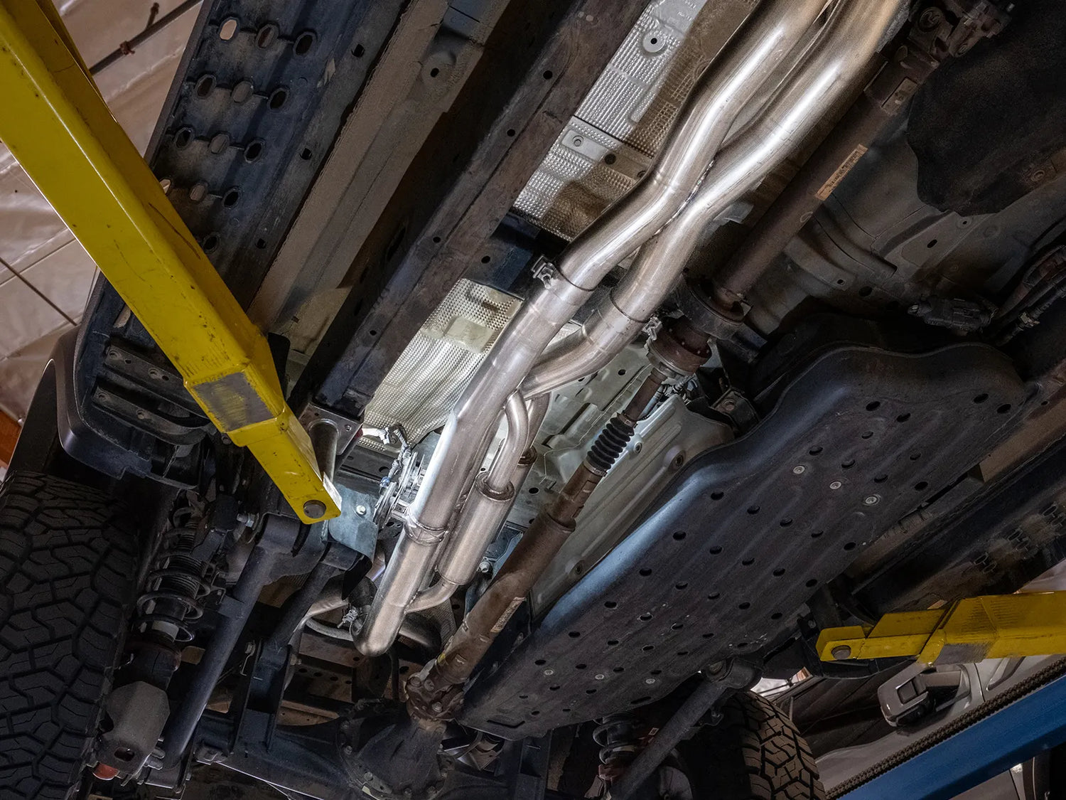 An acoustically tuned expansion chamber refines the exhaust note, producing a deep, aggressive tone without unwanted drone. Integrated factory-style valves (utilizing the OEM valve motors, not included) ensure the system works seamlessly with your truck’s active exhaust mode, regulating flow for optimal performance and sound control.