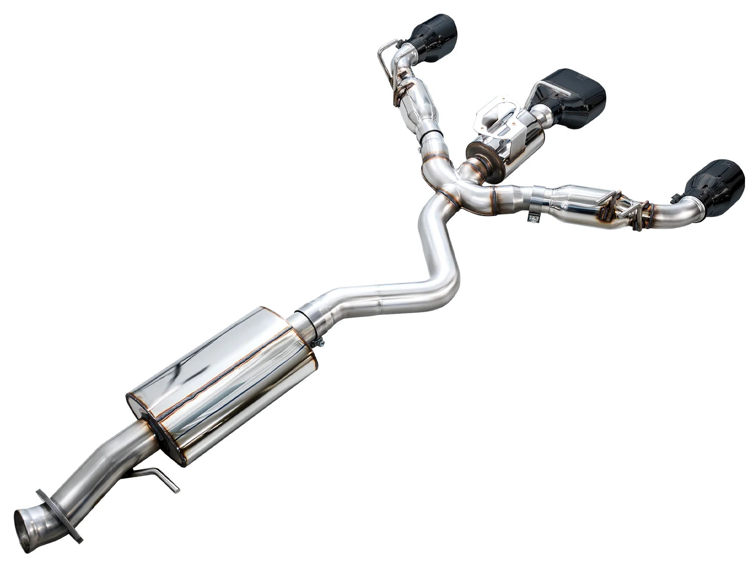 The exhausts are crafted with AWEās signature attention to detail, featuring bespoke, straight-through resonators that help maintain an aggressive tone while preventing rasp. AWE also offers stunning tailored tips, with a 4.5ā x 8ā oval tip in the center and two 5ā double-walled, slash-cut tips flanking either side, available in chrome silver or diamond black for a sleek, custom look.