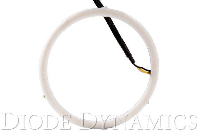 All input wires activate the halos, at different brightness levels. All amber-colored halos ship with low priority drivers. This means that if both low and high power inputs are powered, the LED will light up with low power level. This is convenient for connecting the red wire to a parking light or DRL signal, for use during the day as a high-power DRL. Then, if the white wire is connected to the headlamp power, they will dim down at night. If the yellow wire is powered at any time, the halo will light up at 200 percent brightness momentarily, intended for signalling (dims automatically if powered for more than two seconds).