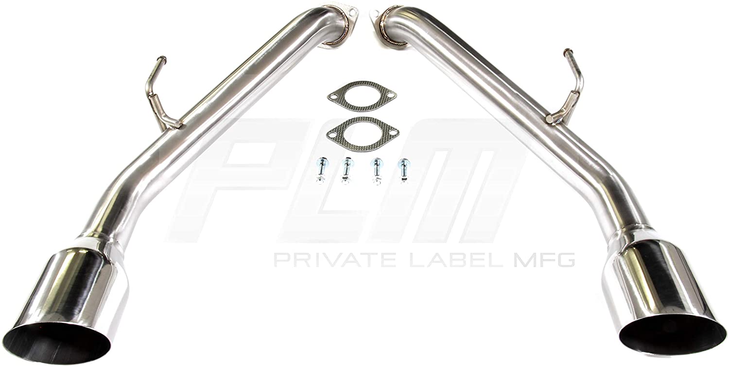 PLM Private Label Mfg. axle back (muffler delete) is made of tig welded stainless steel. With direct bolt-on installation to the OEM factory exhaust system.