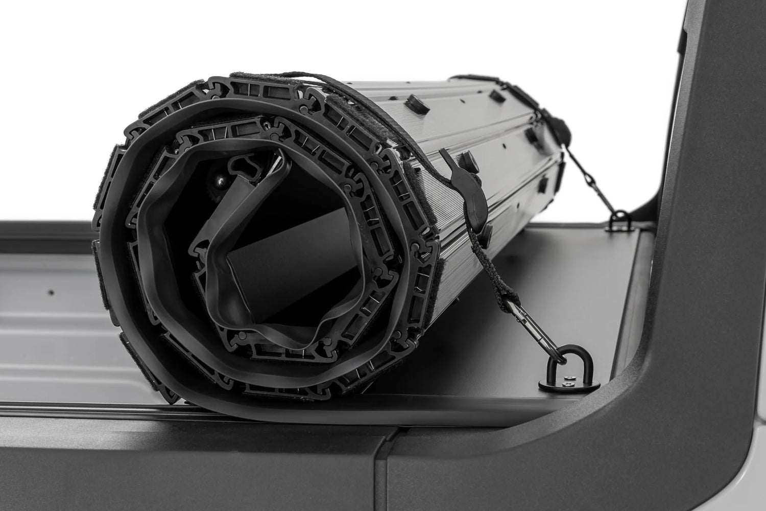 Rough Countryās track and rail mounting system ensures a snug, weather-resistant fit with built-in drain tubes to channel water away from your cargo. Heavy-duty seals and powder-coated hardware keep out dust and moisture, giving you reliable protection in every season.