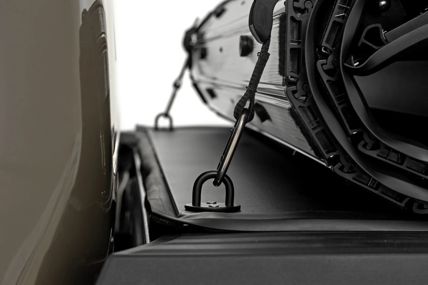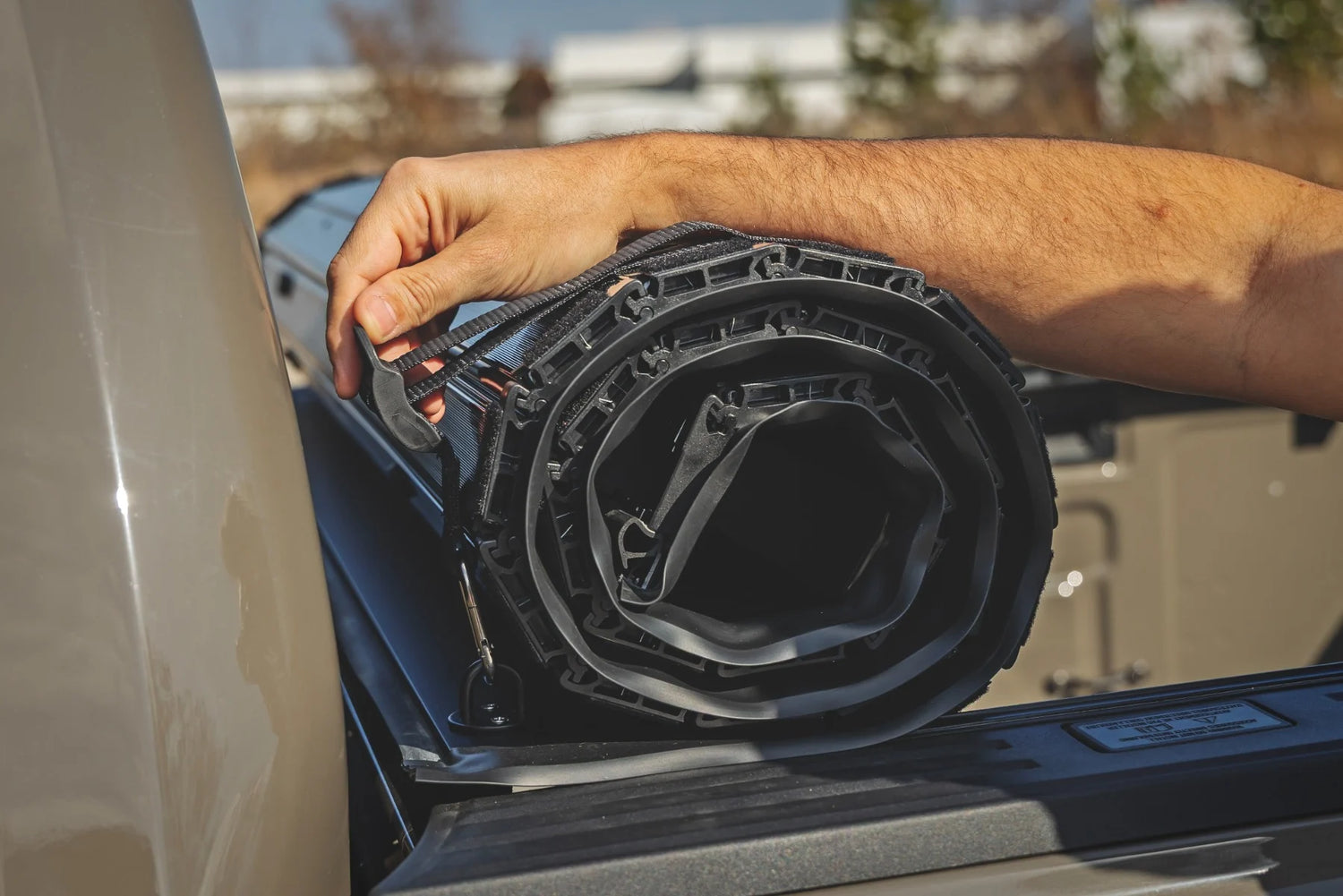 Constructed with durable aluminum slats finished in matte black, this low-profile cover sits flush with the bed rails for a clean, streamlined appearance. The roll-up design allows near full bed access in seconds, making it ideal for hauling tools, equipment, or weekend adventure gear. A single cable pull instantly releases the latch, while the auto-latching system locks the cover securely when closed for added peace of mind.
